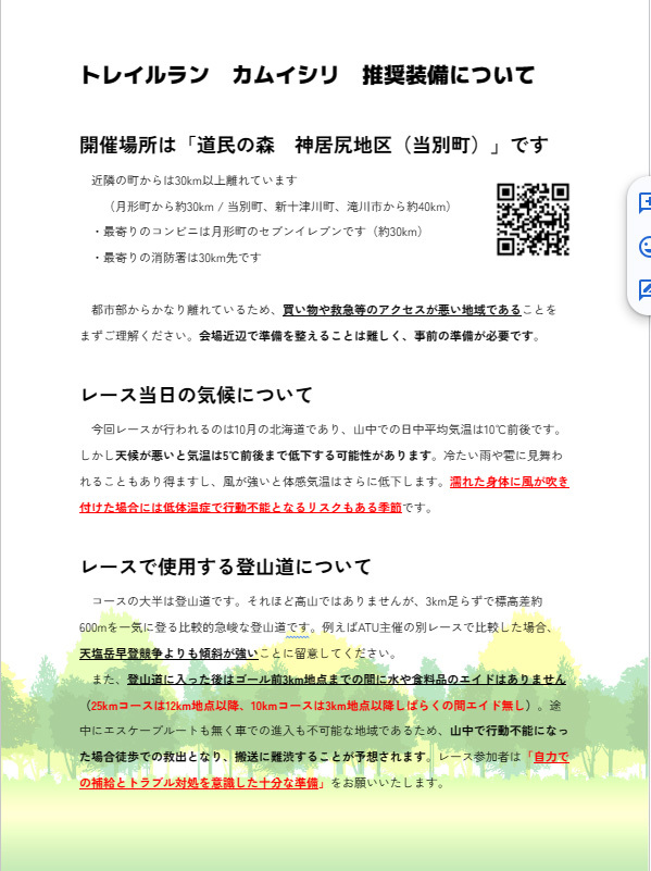 | 受 付 場 所 | 石狩郡当別町 道民の森神居尻地区 特設会場 | ||||||||||||||||