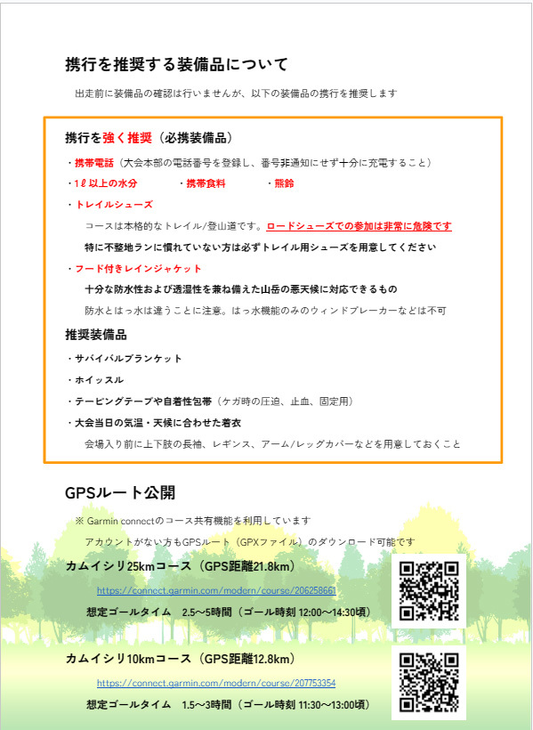 | コース 説 明 | 25K(9:05~) 10K(9:35) 必ず参加してください | ||||||||||||||||